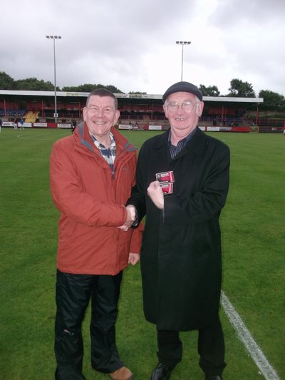 “I was thrilled when Barry Arnison telephoned to inform me I had won this fantastic prize. I attend all our home games so will make full use of the perks associated with this package. I would like to thank Glenn, Reds’ officials, the RDF and the many volunteers for the sterling work they are doing for the club,” said a delighted Andrew, who is pictured receiving his tickets from RDF representative, Harry Hartley.